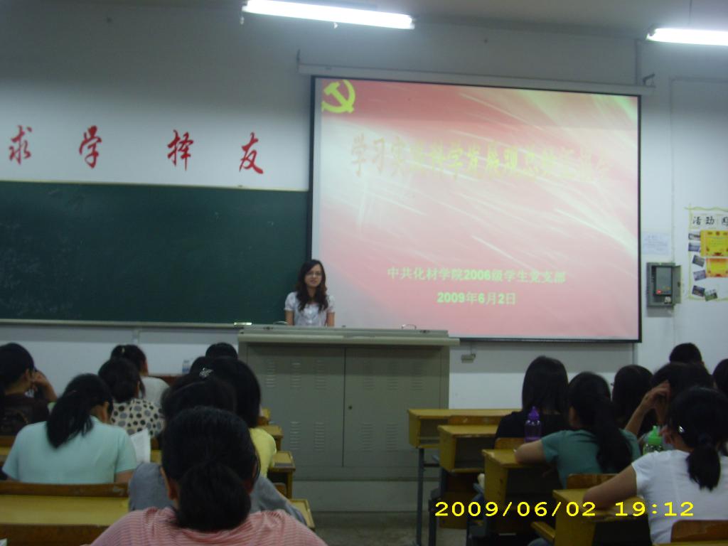 06级学生党支部在1405教室召开了学习实践科学发展观第一阶段总结汇报会暨第二阶段动员大会,会议由徐凯旋同志主持,支部所有党员出席会议。