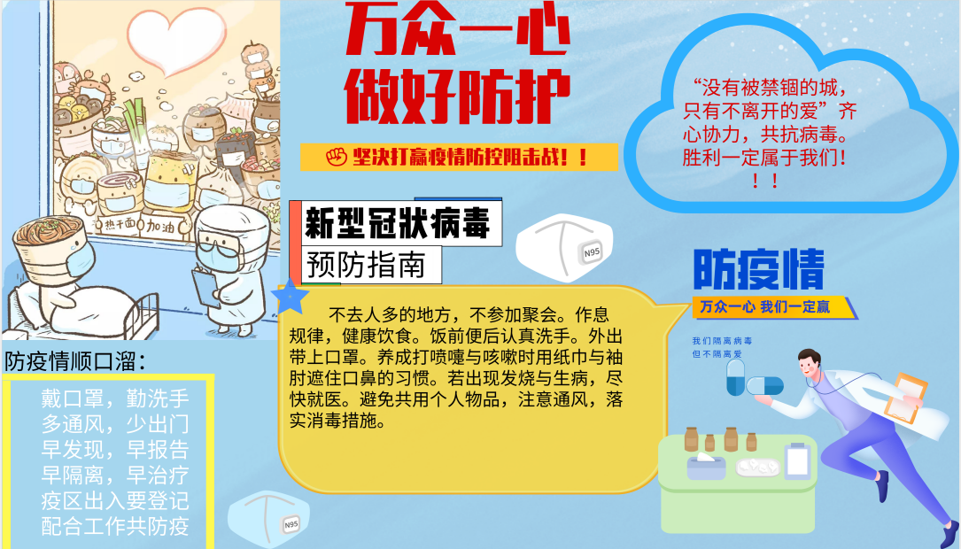 陶勇/吴泓婧 )岁末年初,由新型冠状病毒引发的肺炎疫情爆发,一场防疫阻击战刻不容缓。为抗击疫情,赢得防疫攻坚战,化材学子积极响应“疫情就是命令,防控就是责任”的号召,通过线上宣传和线下志愿活动等形式,为抗击肺炎疫情贡献出一份当代青年军的力量。