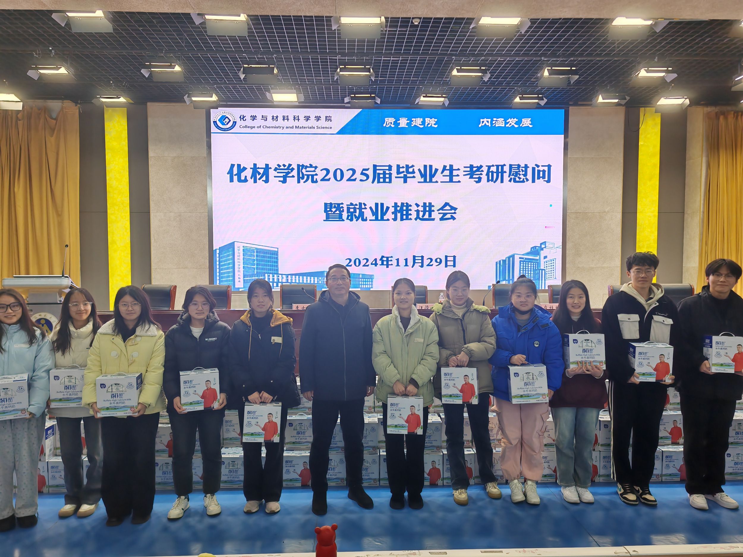 在理科大楼报告厅召开2025届毕业生考研慰问暨就业推进会。学院党委书记汪俊武、院长庄桂林、党委副书记李古州、毕业班辅导员及2025届全体毕业班学生参加会议,会议由李古州主持。